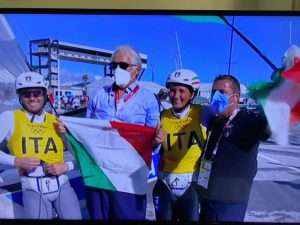 Caterina Banti e Ruggero Tita donano all’Italia una quinta splendida medaglia d’oro nei Giochi Olimpici di Tokyo 2020. Nella finale delle medaglie dedicata ai Nacra 17, velocissimi catamarani di nuova concezione, l’equipaggio azzurro chiude al sesto posto, al temine di una gara tattica che gli consente di conquistare i punti necessari per arrivare il metallo più prezioso. Al secondo posto i britannici Gimson-Burnet, che nella gara odierna arrivano avanti al duo italiano ma non abbastanza per arrivare all’oro.