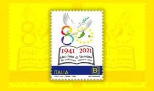 Poste Italiane celebra l’Europa alla sua maniera: per ricordare gli 80 anni del ”Manifesto di Ventotene”, redatto da Altiero Spinelli ed Ernesto Rossi nell’isola pontina, ha emesso un francobollo valido per l’invio della posta ordinaria nei paesi europei. Il francobollo riproduce il logo per le celebrazioni dell’80 anniversario del Manifesto: un libro, una colomba che simboleggia la pace e le stelle dorate dell’Unione Europea.